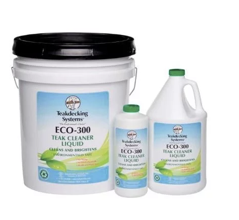 ECO-300 Teak Cleaner Liquid is formulated to be 100% environmentally-friendly and represents the most advanced teak cleaning liquid in the marine industry today (and for TDS Composite decking too). It contains no acid, caustic sodas or phosphates and is non-toxic to the user. ECO-300 Teak Cleaner Liquid is designed to not harm your teak, caulking, hardware or paint. This ready-to-use cleaner easily adheres to a scrubbing pad and brightens teak better than harsh chemical cleaners, restoring original golden color and providing a richer look.