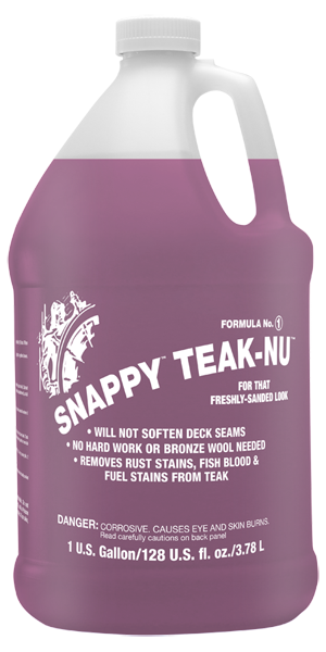 Snappy Teak-Nu is the easy two-step cleaning process that will transform your weathered teak deck to that brand new golden look without the need for expensive, time-consuming and destructive sanding. After applying the product and following the necessary steps described below, your deck will look like the day your yacht came out of the factory.