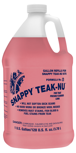 Snappy Teak-Nu is the easy two-step cleaning process that will transform your weathered teak deck to that brand new golden look without the need for expensive, time-consuming and destructive sanding. After applying the product and following the necessary steps described below, your deck will look like the day your yacht came out of the factory.