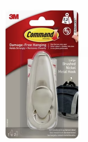 Command™ Brushed Nickel Metal Hook is our innovative solution for hanging everyday household items securely and damage free. It holds strongly and removes cleanly using 3M stretch-release technology.