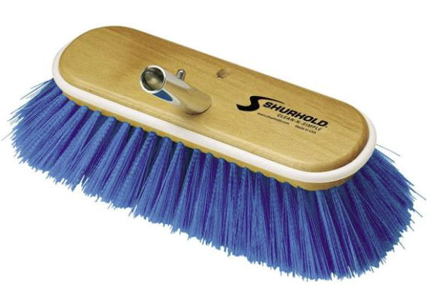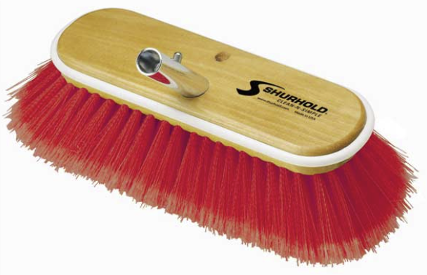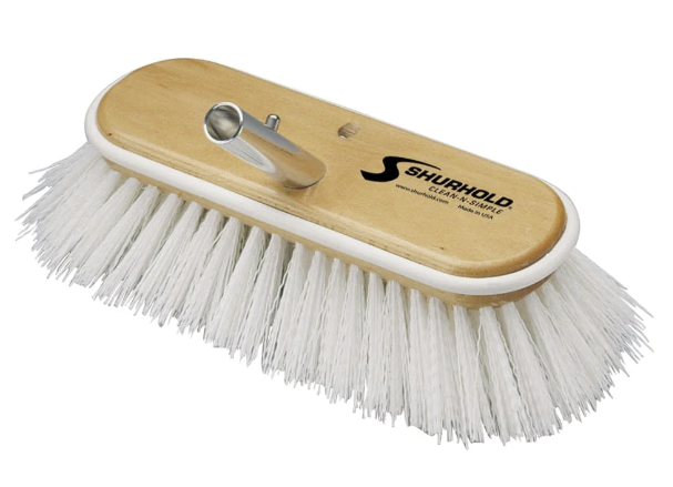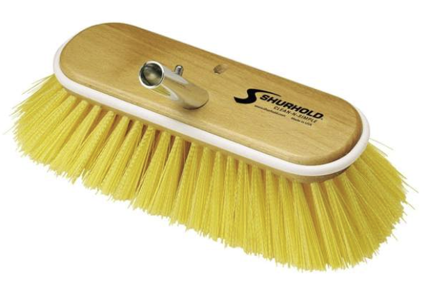 Shurhold's series of 10 inch (25 cm) deck brushes easily and positively lock into any Shurhold handle. Each brush is carved from a solid wood block and has a rubber wrap-around bumper to prevent marking the surface.