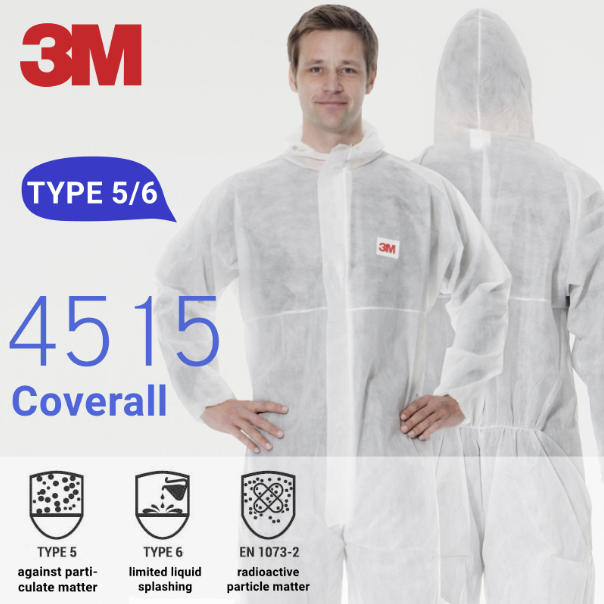 The 3M™ Protective Coverall 4515 is disposable safety work wear made of lightweight, breathable polypropylene. Suitable for various applications, it helps provide basic barrier protection against certain light liquid splashes and hazardous dusts.